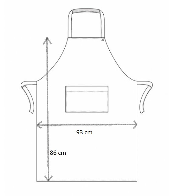 Rozměry zástěry: délka 86 cm, šířka 93 cm